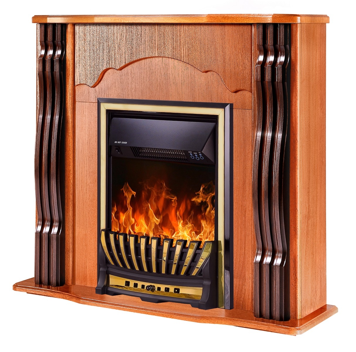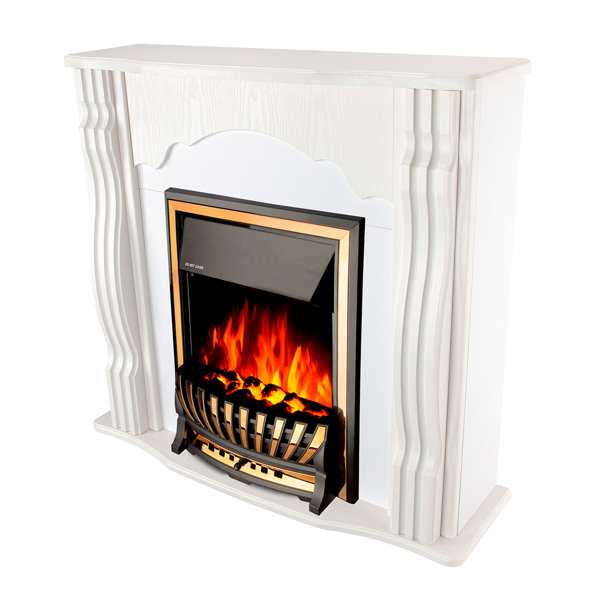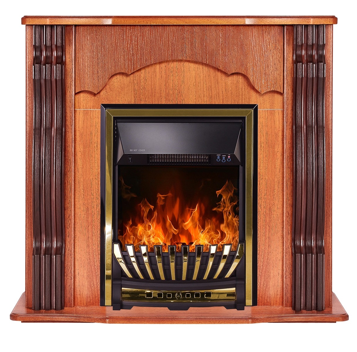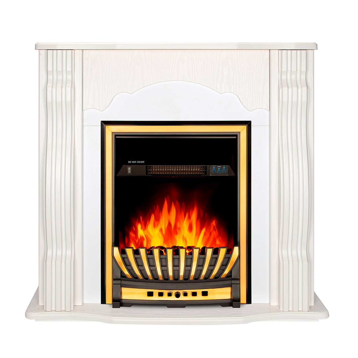 Electric fireplace "Meridian" is made in a dark design with a gold fence and frames. The device is capable of operating in 2 modes: in decorative mode and heating mode. In decorative mode, the device creates a cozy atmosphere with a high-quality simulated flame, the brightness of which can be changed using the remote control that comes with the kit. In heating mode, the electric fireplace is able to heat a room of 20m2. Overheating protection is responsible for the safety of the fireplace.