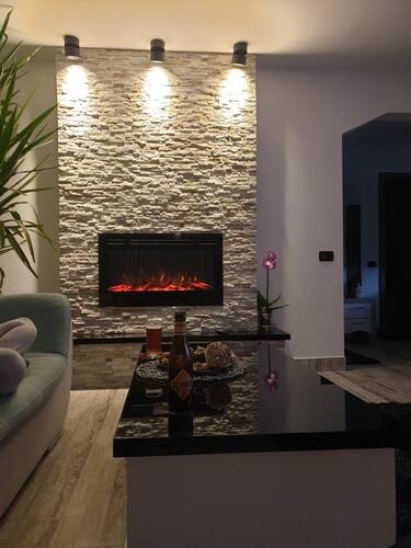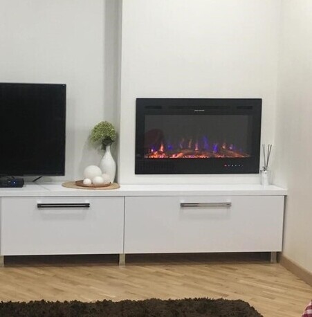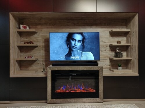 The Adeli electric fireplace offers the possibility to be incorporated or mounted on the wall, according to your wishes. Thanks to LED lighting and economical thermal convectors. The multi-colored flame is set using the control panel or the one at the bottom of the fireplace. The simple exterior design allows it to fit into any desired interior.