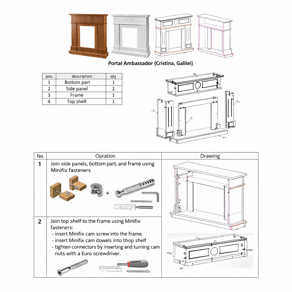 Fireplaces sets from Art Flame will present a wide range of products with a high quality design. These fireplaces do not require special installation skills, as they are delivered assembled and ready for use. The Ambassador fireplace will be the jewelery of your house. The Ambassador Portal perfectly combines classic and modern styles. It is made in two colors: white and brown, with strict lines on the columns.