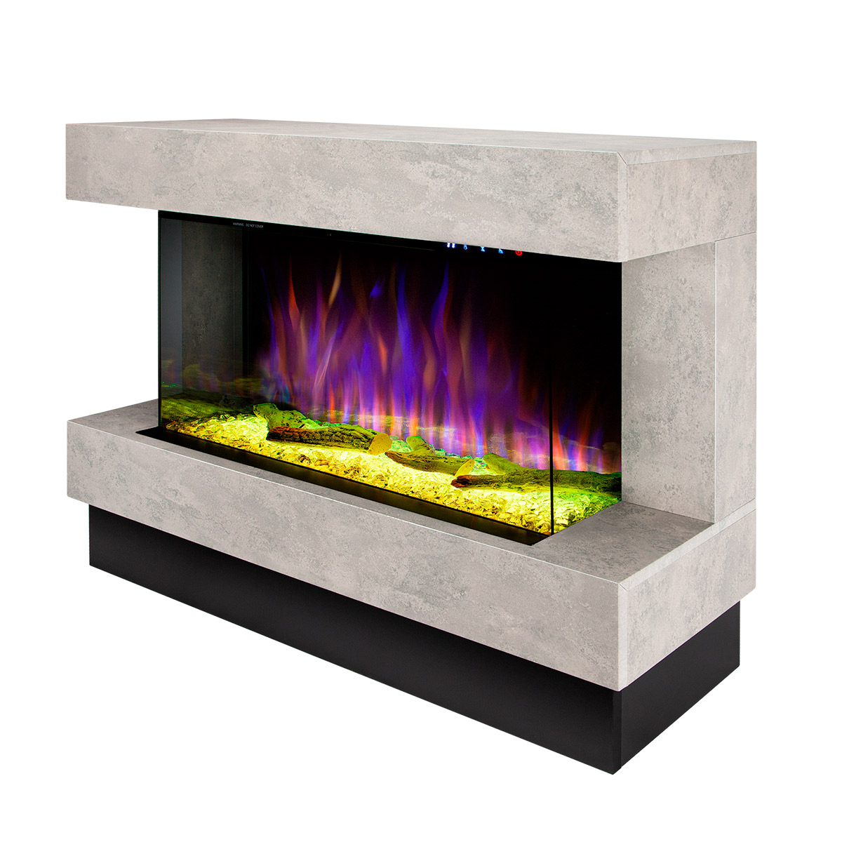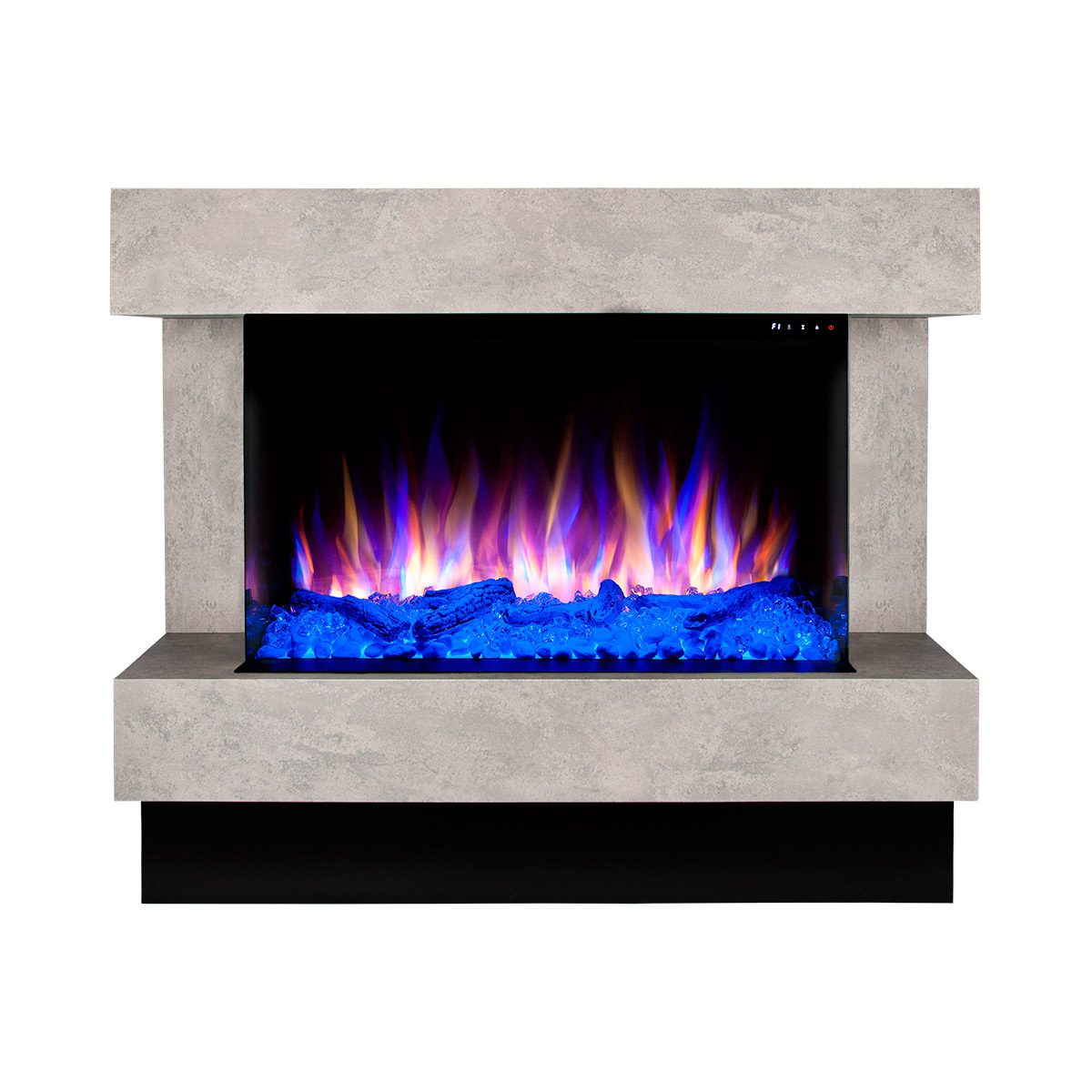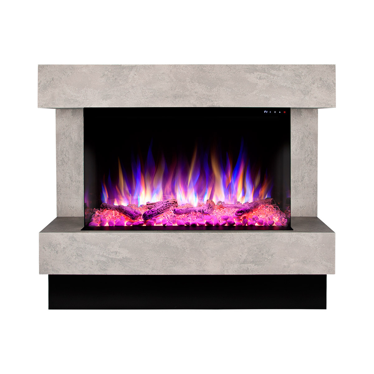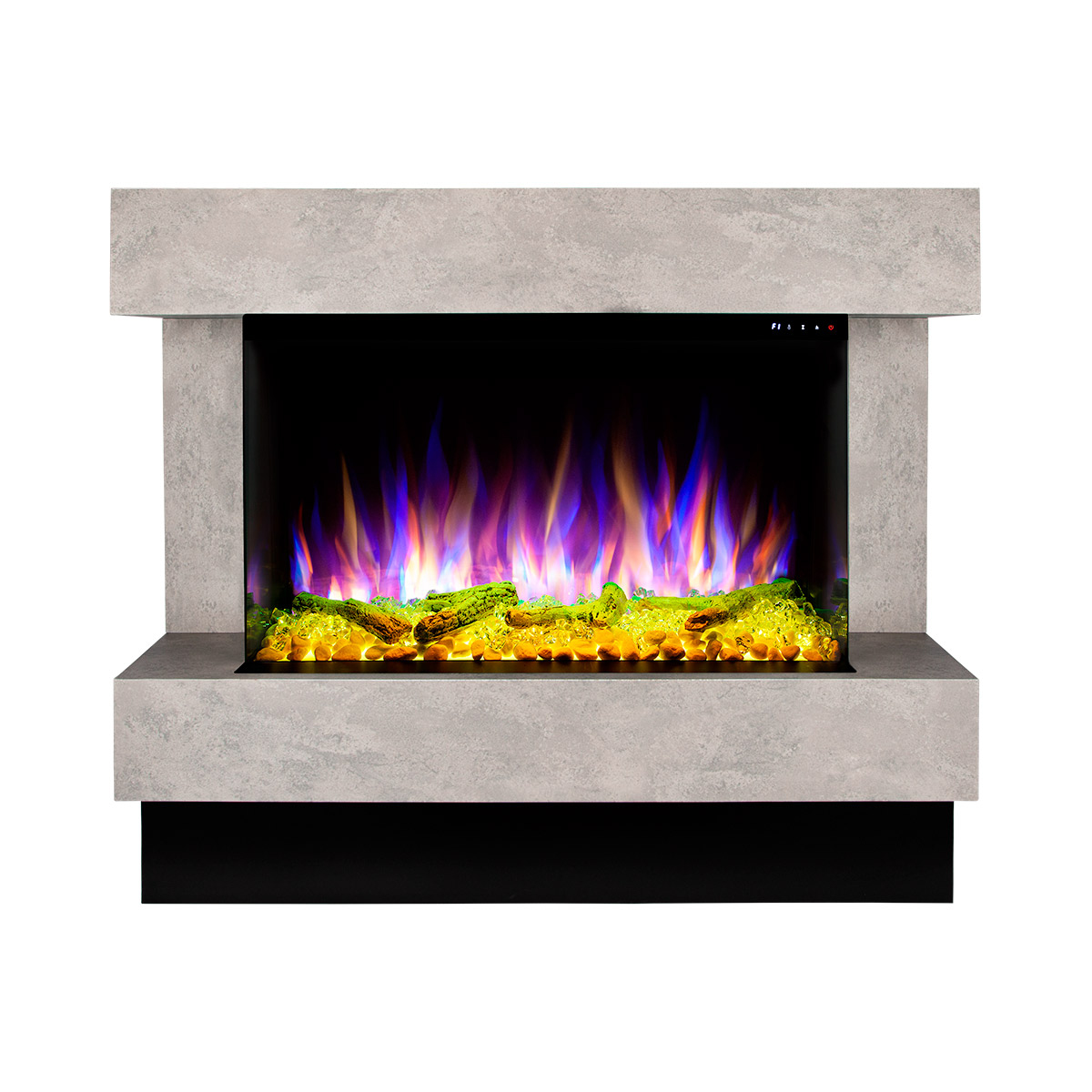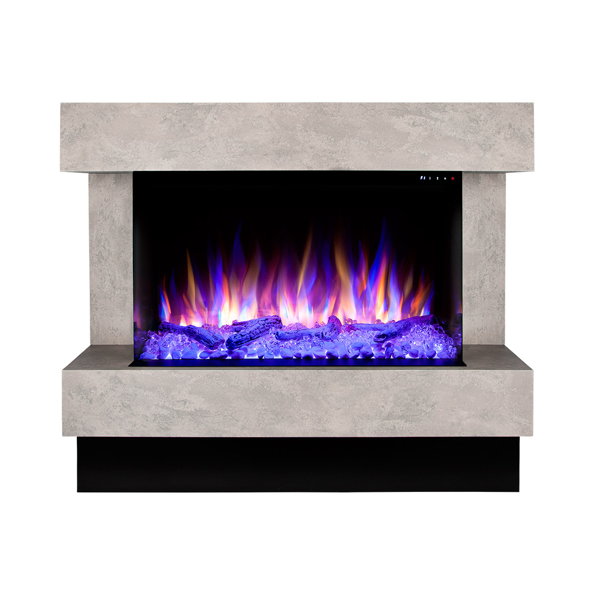Startseite Elektrokamine mit Kaminkonsole Premium Elektrischer Kamin Glow & Haiti 33, Art Flame, 880x1100x350 mm, 1500W, 100 Farbkombinationen, Thermostat, Brennholz und Kristalle