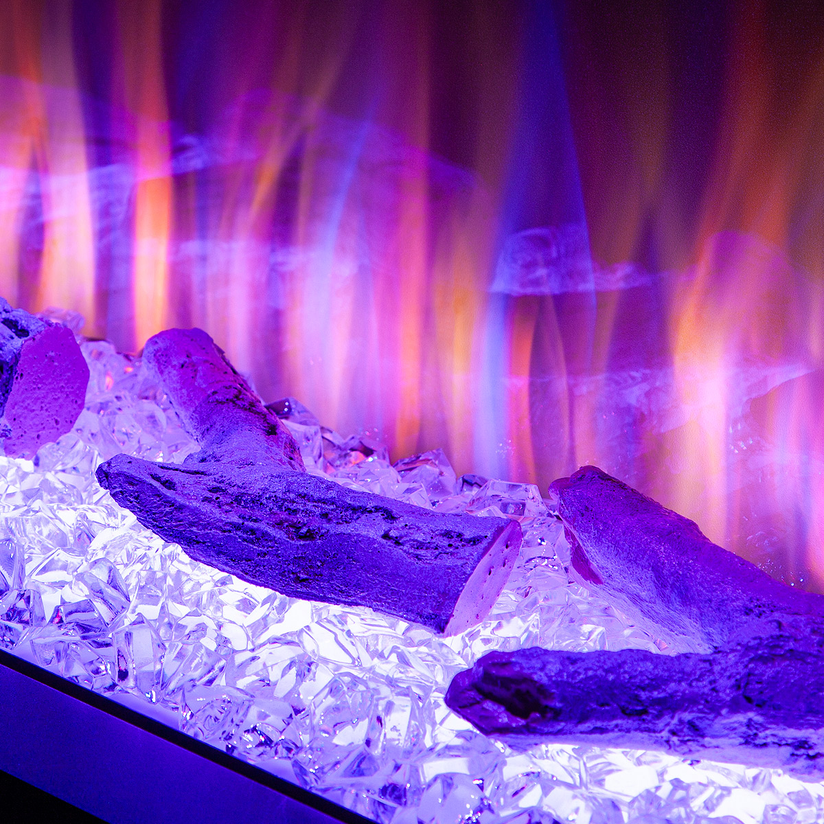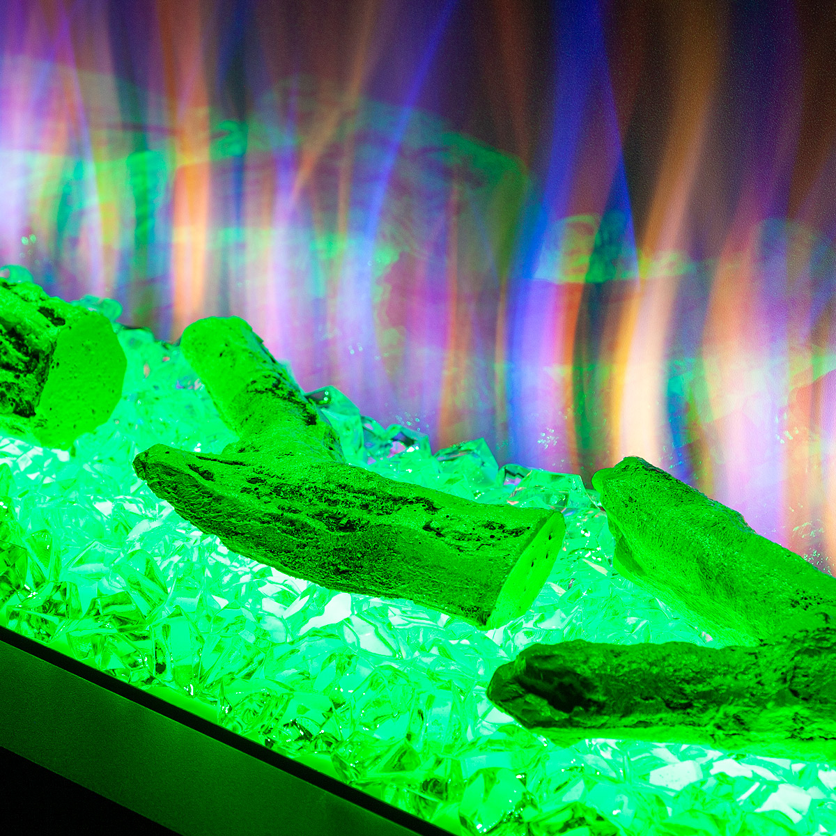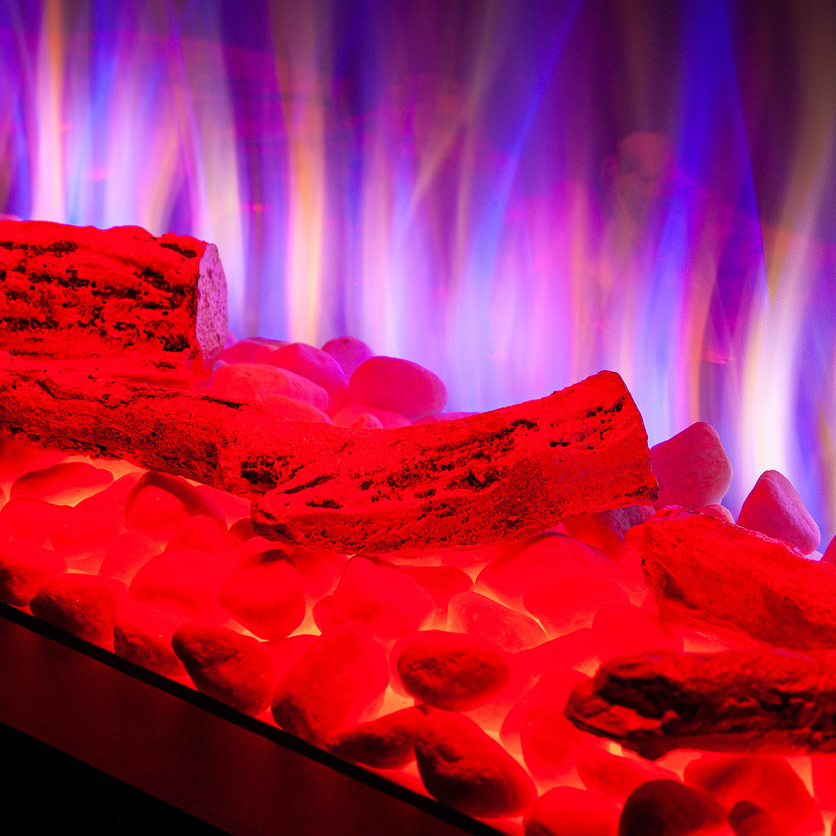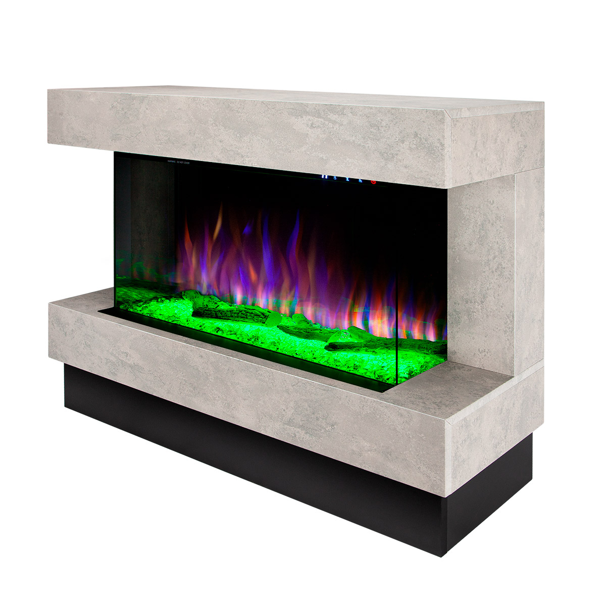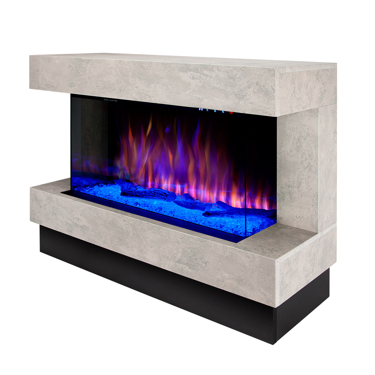 Startseite Elektrokamine mit Kaminkonsole Premium Elektrischer Kamin Glow & Haiti 33, Art Flame, 880x1100x350 mm, 1500W, 100 Farbkombinationen, Thermostat, Brennholz und Kristalle