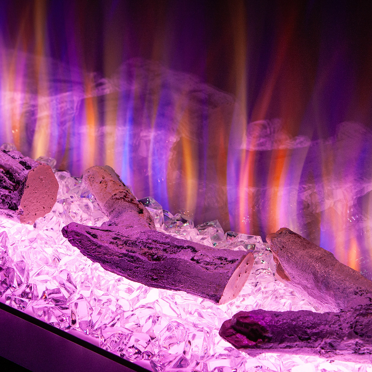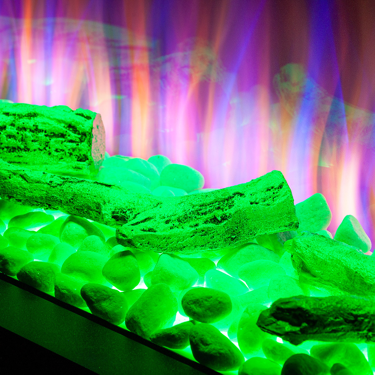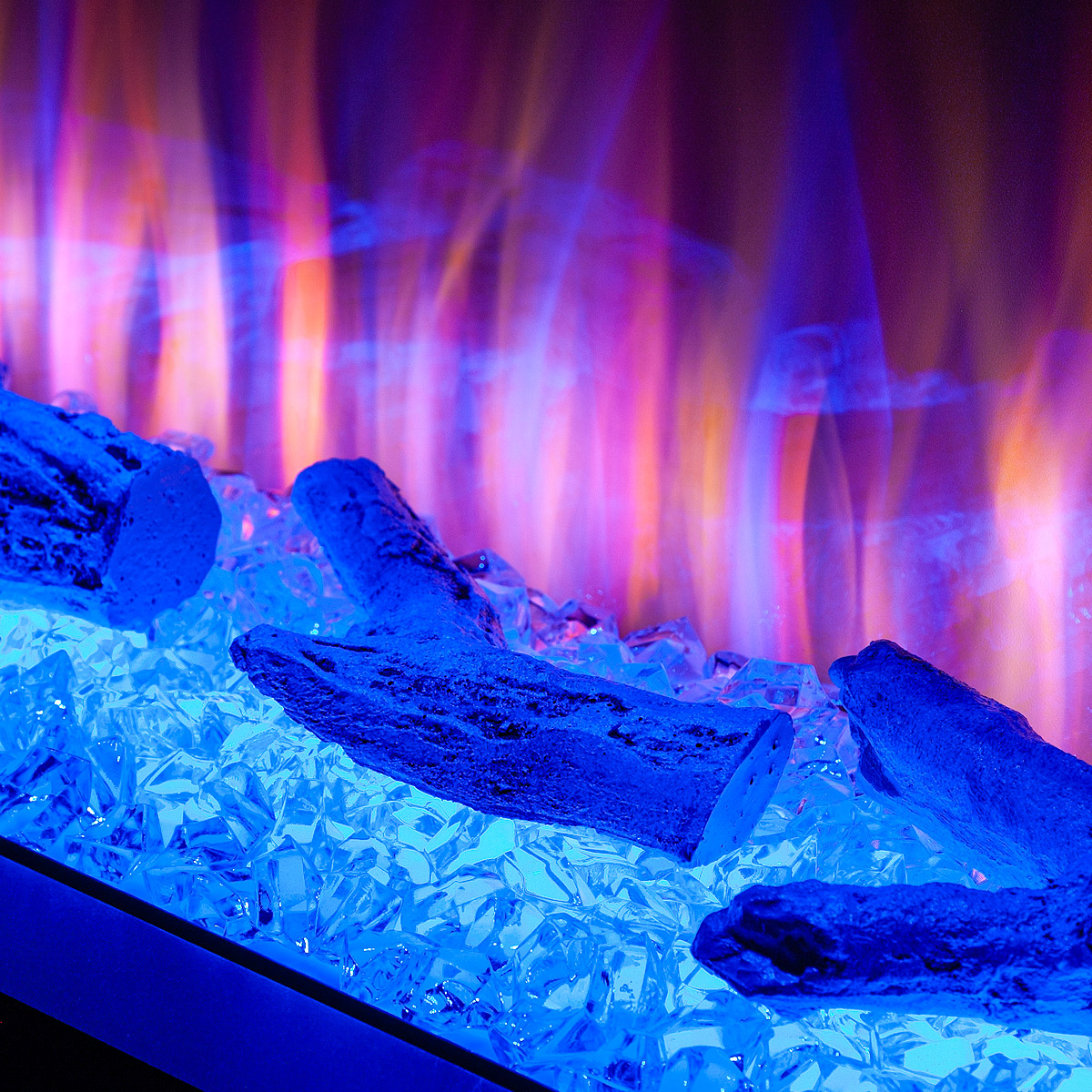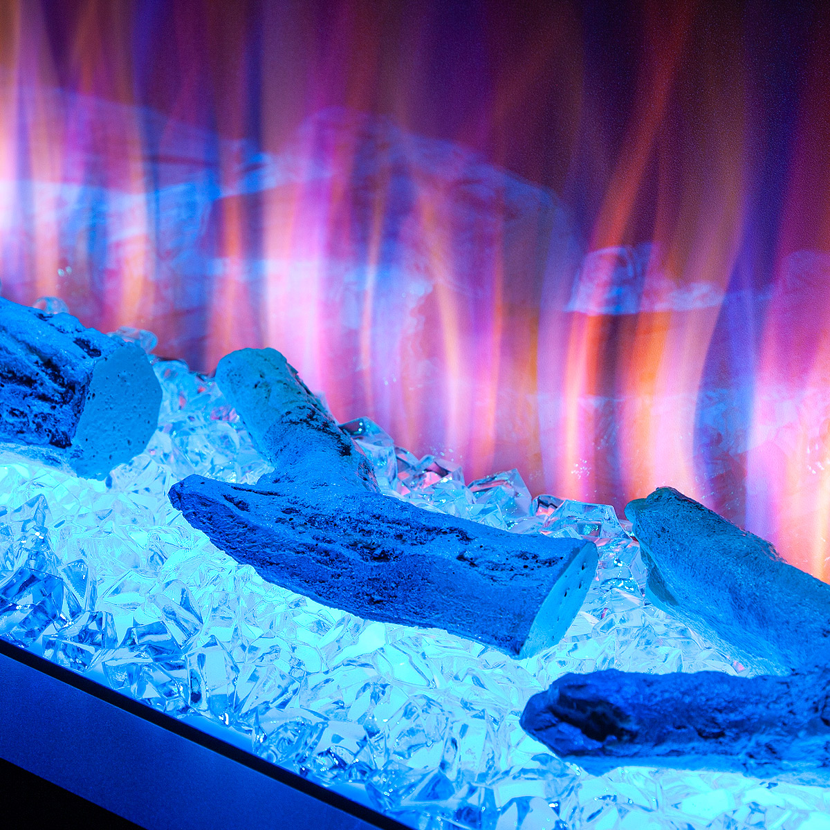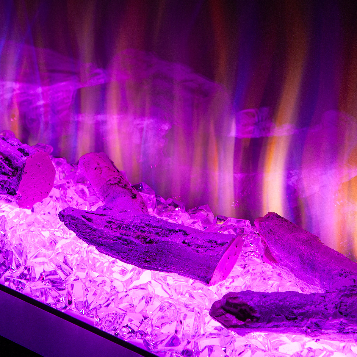 Startseite Elektrokamine mit Kaminkonsole Premium Elektrischer Kamin Glow & Haiti 33, Art Flame, 880x1100x350 mm, 1500W, 100 Farbkombinationen, Thermostat, Brennholz und Kristalle
