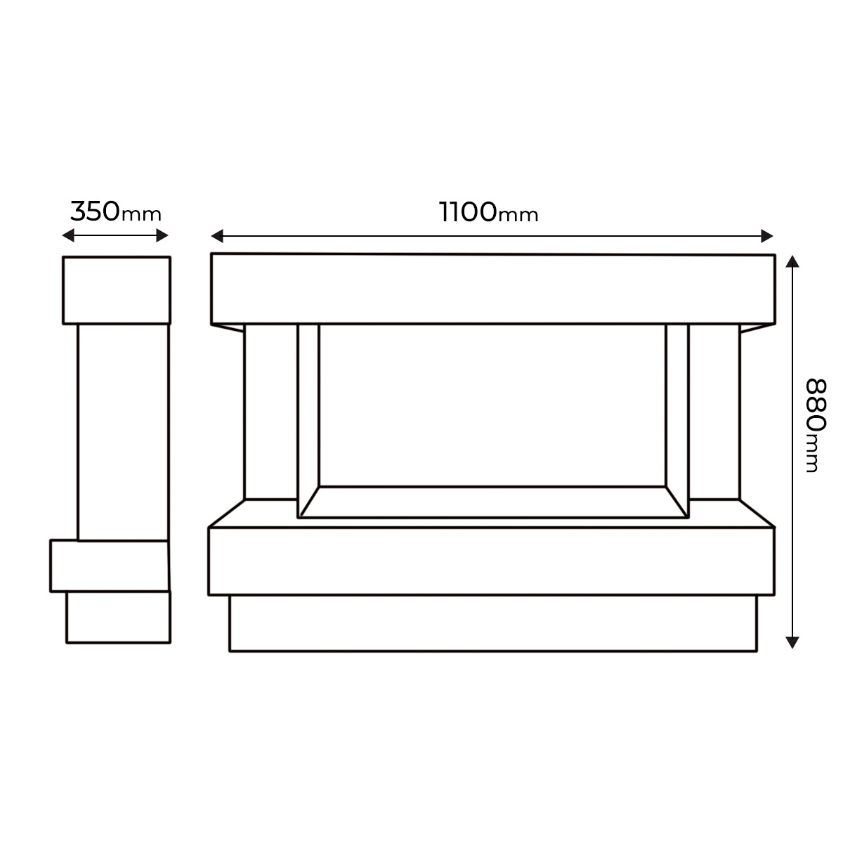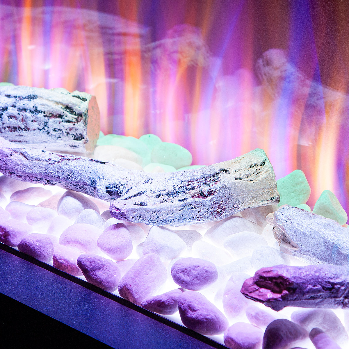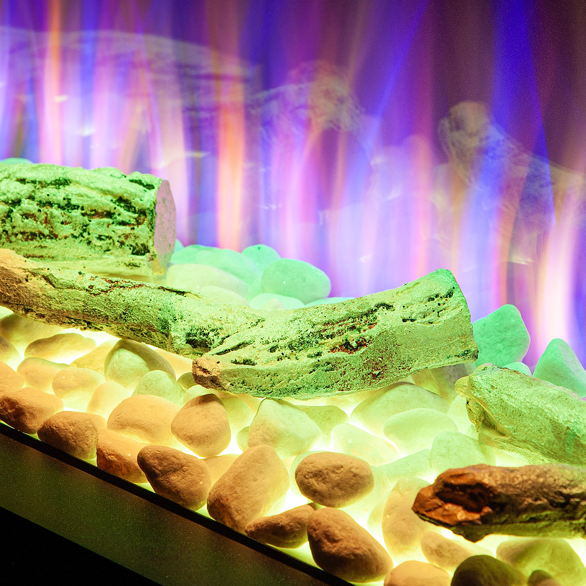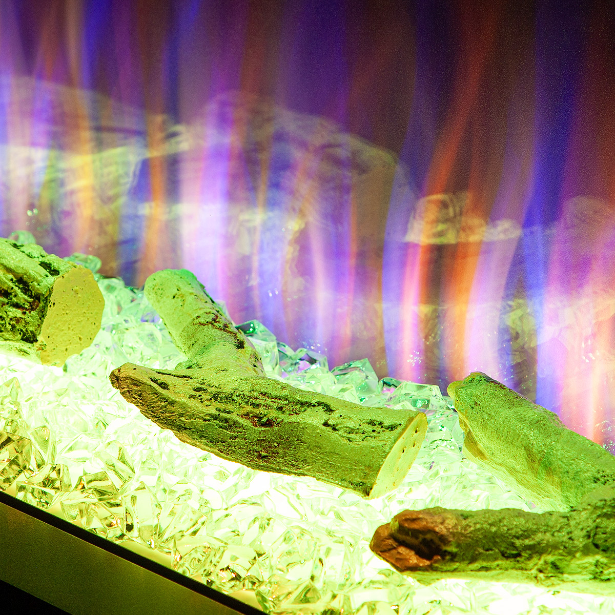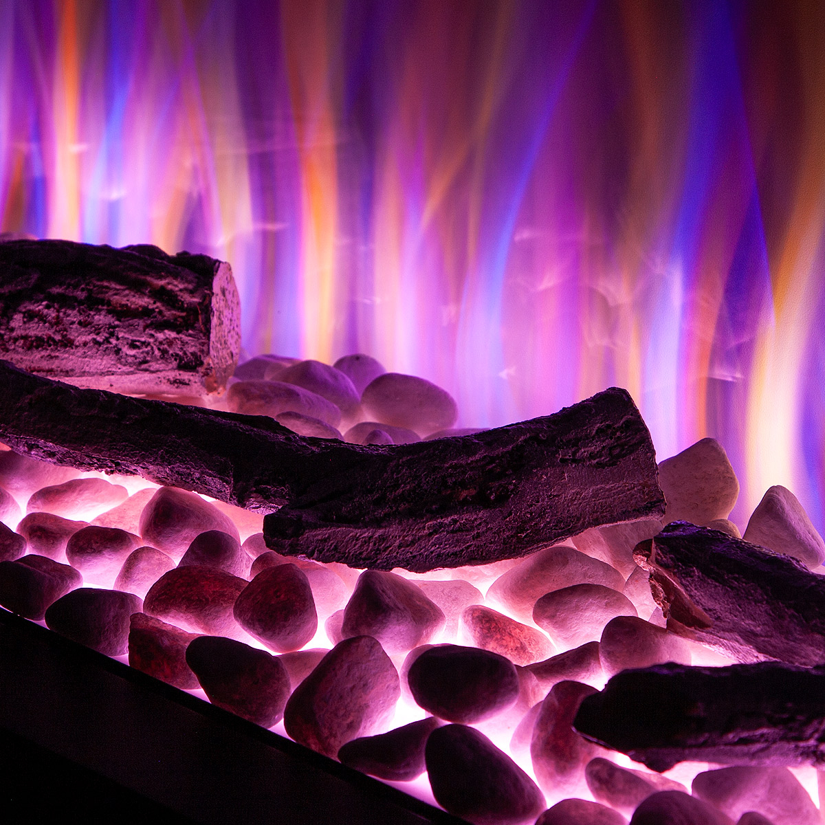 Startseite Elektrokamine mit Kaminkonsole Premium Elektrischer Kamin Glow & Haiti 33, Art Flame, 880x1100x350 mm, 1500W, 100 Farbkombinationen, Thermostat, Brennholz und Kristalle