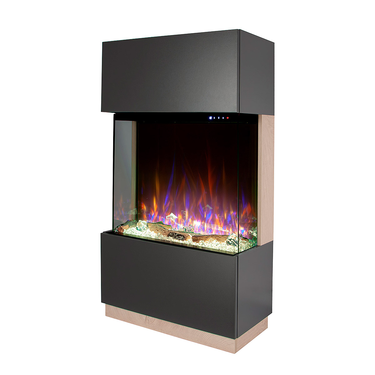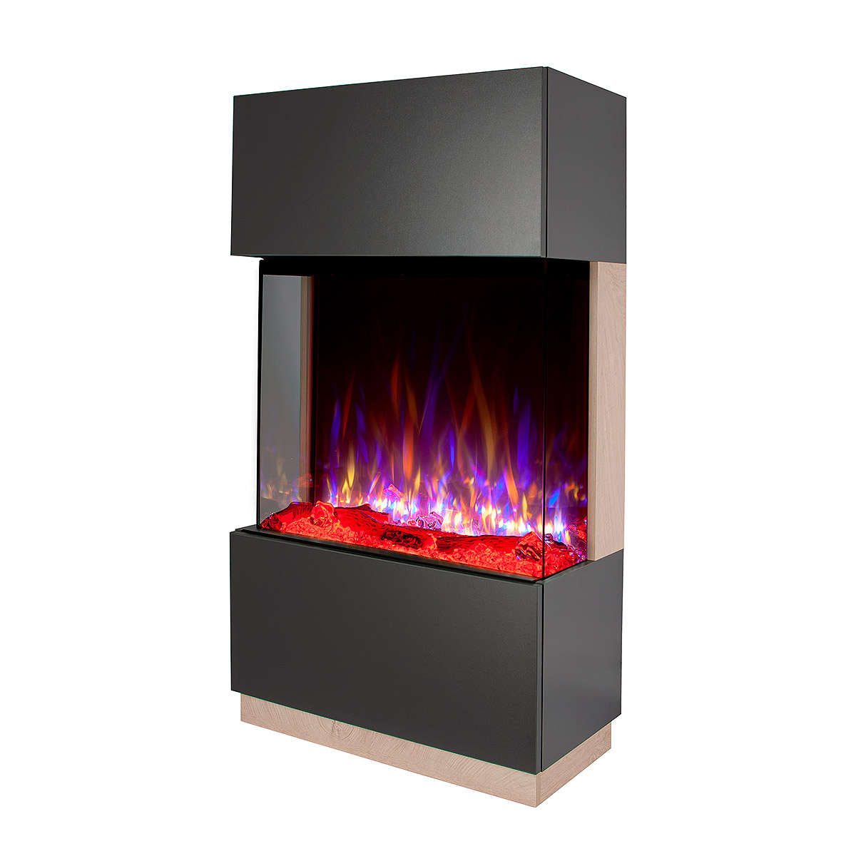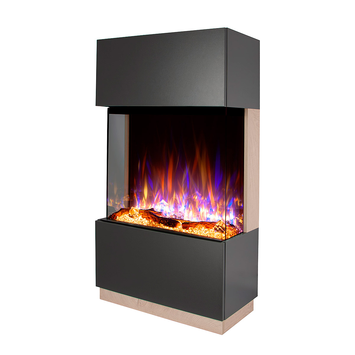 Startseite Elektrokamine mit Kaminkonsole Premium Elektrischer Kamin Kristalle und Dekosteine James &Gilbert, Art Flame, 1400x750x370 mm, 1500W, mehr als 100 Farbkombinationen, Thermostat, Brennholz