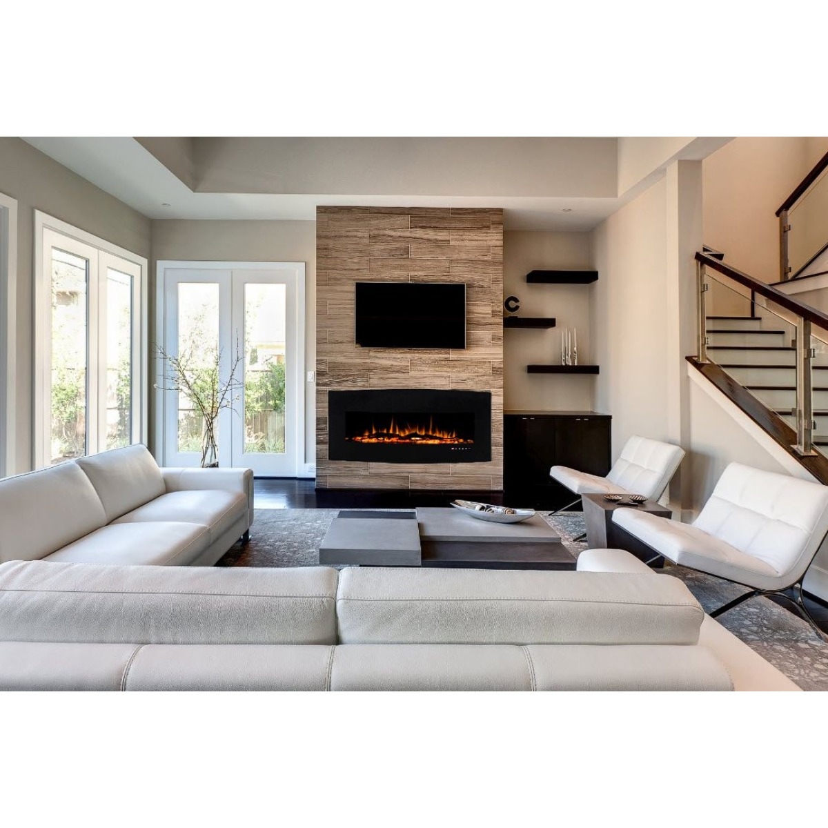 • Lieferumfang Kamin / Bedienungsanleitung / Fernbedienung / Installations-Kits / Dekoratives Holzscheit-Set