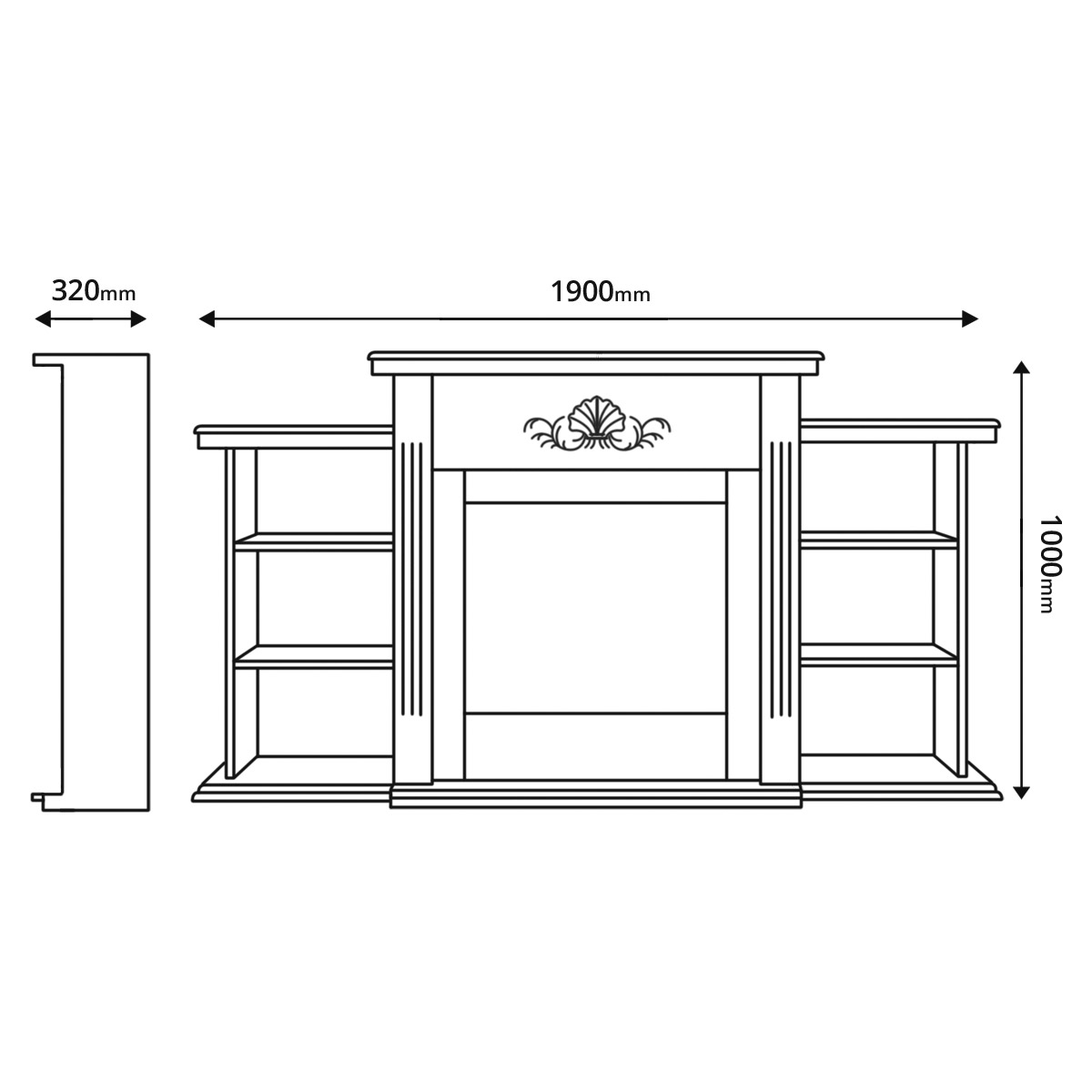 "Sofia Plus" is a portal with additional shelves for decor items. The portal is made in classic white color with a 3D ornament on the front side. Also on the sides of the portal are shelves. The portal is made of high quality MDF and chipboard materials.